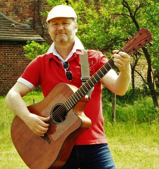 Mit fünf Jahren hatte er Einzelunterricht an der klassischen Gitarre. Für zehn Wochen!!! Mit zehn Jahren war er zwei Jahre am Konservatorium im Chor mit Stimmbildung und hatte Blockflötenunterricht mit Notenlehre. Das war wohl alles nichts, mehr verordnet als gewollt, so dass die Musik die nächsten Jahre ruhte. Mit 17 kam bei ihm die Frage auf, warum die hübschesten Mädchen immer bei den Gitarrespielern sitzen. Also hat er sich in einer kurzen Phase autodikatisch acht Grundakkorde (C, D, G, A, F, Em, Am, Dm) eingepaukt und Schlager auf seiner alten Gitarre „geschrammelt“. Später hat er in der Singegruppe Volkslieder und Lieder von Liedermachern gesungen. Dann kamen die eigenen Kinder und die Zeit reichte nur noch für „Gute-Nacht-Lieder“. Seit zehn Jahren nun hat er die Liebe und die Zeit für Musik wiedergefunden. Zunächst für sechs Jahre in einer regelmäßigen Session für traditionelle irische Musik in Potsdam, dann eigene Nachdichtungen irischer und schottischer Lieder und mittlerweile schreibt er eigene Lieder so z.B. über die Sagengestalten des Spreewaldes. So schön alleinige Interpretationen von Liedern für ihn sind, richtig schön wird Musik - nach seiner Ansicht - erst beim gemeinsamen Musizieren mit mehreren Instrumenten und Stimmen.